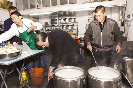 “不是的,施粥與金融危機沒有關(guān)系。我們施粥不是從今年開始的,從四年前就開始了!敝炖喜攬鼍头穸。