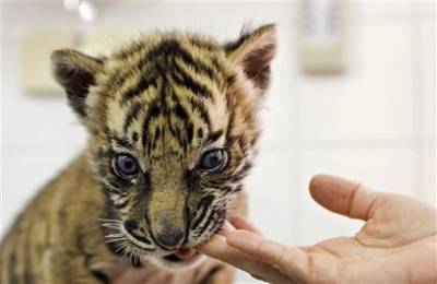 中新網(wǎng)2月26日電 以色列耶路撒冷動物園里的一只蘇門答臘虎,兩個月前生了兩只小老虎,沒想到母老虎不但不管小老虎,還差點吃掉它們,最后只有一只小老虎成功活下來。動物園獸醫(yī)無計可施,最后只好把小老虎帶回家養(yǎng),暫時充當起虎保姆。