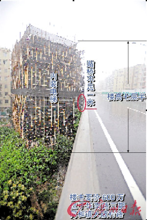自建房距離華南路三期不足1米,房子和華南路仿佛在跳“貼面舞”。更讓人驚奇的是,該自建房不但每層都有6套大小不一的套房,而且還安裝了電梯。工地負(fù)責(zé)人說(shuō),如果全部賣出,這棟房子的身價(jià)高達(dá)600多萬(wàn)元。