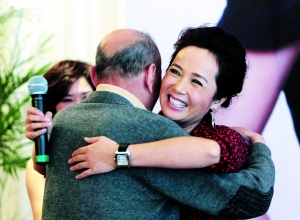 蔣雯麗本月雙喜臨門(mén),剛憑借《立春》獲得金雞影后,其導(dǎo)演處女作《我們天上見(jiàn)》又在韓國(guó)釜山電影節(jié)上榮膺“最受觀眾喜愛(ài)電影大獎(jiǎng)”。雙獎(jiǎng)在手的蔣雯麗昨日偕《我們天上見(jiàn)》的主演朱旭等在京慶功,可惜慶功宴上丈夫顧長(zhǎng)衛(wèi)姍姍來(lái)遲,活動(dòng)已經(jīng)結(jié)束了才出現(xiàn),連話都沒(méi)來(lái)得及說(shuō)上一句。