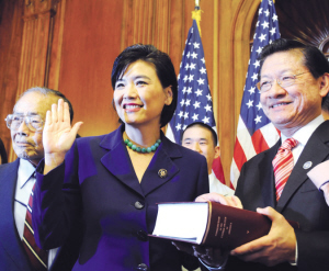 在洛杉磯地區(qū)政壇活躍了24年的趙美心(Judy Chu)2009年7月14日晚,在加州聯邦第32選區(qū)的特別選舉中勝出,當選美國首位華裔女國會議員,締造了歷史。在國會參眾兩院五百多位議員中,趙美心是繼吳振偉之后的第二位華裔國會議員,也是美國建國兩百多年來首位華裔女聯邦議員。