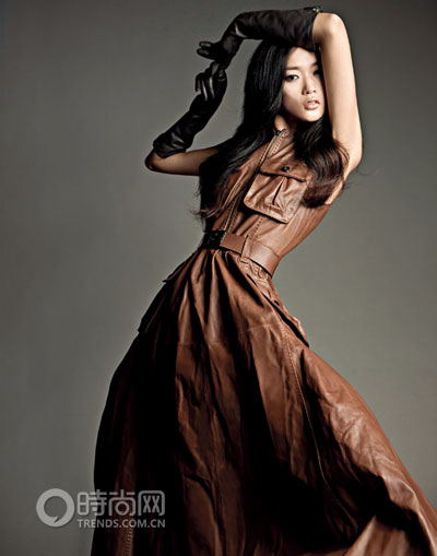 完全皮質(zhì)棕色連衣裙,飄揚裙擺氣勢十足。