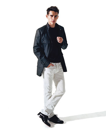 五:夜間的白色仔褲?肯定!讓白色仔褲也能適合夜間穿著?那么,剩下的部分你要絕對(duì)小心才行。不但要簡(jiǎn)潔大方,更要充實(shí)自然。一件黑色的輕薄高領(lǐng)開(kāi)司米運(yùn)動(dòng)衫,和一件合身的小夾克,都是不錯(cuò)的選擇。跳過(guò)運(yùn)動(dòng)鞋,選擇黑色的復(fù)古皮鞋吧,那才是最合適你的裝備。