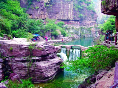 8億年前,云臺(tái)山還是汪洋一片,氣候和現(xiàn)在的東南亞一樣。今天的云臺(tái)山已經(jīng)變成了氣勢(shì)磅礴的地質(zhì)公園。有意思的是,云臺(tái)山不僅有各種各樣的巖石山,還有泉、瀑、潭。稍有平坦之地,便有各種果樹(shù),可以隨手摘棗子、山葡萄、柿子、石榴……