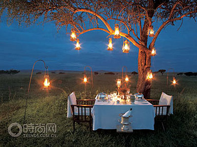 整個(gè)營(yíng)地一副上個(gè)世紀(jì)20年代走出非洲的風(fēng)情,帳篷里的裝置非常精致,甚至可以說(shuō)件件都是奢侈品。晚餐席間,大家熱烈地討論了今后一周我們要做的事情,在大草原上打網(wǎng)球、騎馬旅行、溫泉SPA當(dāng)然,最重要的就是看動(dòng)物們的舉家遷移,如果山還不夠高的話,坐直升機(jī)怎么樣?我們的專機(jī)隨時(shí)聽(tīng)候起飛命令。