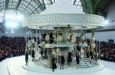 近日,Chanel在北京四季酒店舉辦了08秋冬時裝新品發(fā)布,一場華麗的“旋轉(zhuǎn)木馬”秀成為北京時尚圈一大亮點(diǎn)。在“旋轉(zhuǎn)木馬”設(shè)計里,其實(shí)并沒有木馬的影子,菱格紋包、珍珠項鏈、雙C標(biāo)志、鑲著滾邊的Chanel外套與浪漫蝴蝶結(jié)等經(jīng)典圖騰俏皮地迎接著人們的目光。