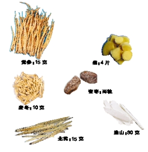 黨參是常用的補氣中藥,具補中益氣、和胃養(yǎng)血等功效,最宜用于平素倦怠乏力,精神不振,自覺氣短,稍一活動就喘促的氣虛患者,由于補氣也有助于生血,所以黨參也適用于氣血兩虛面色蒼白,頭昏眼花,胃口不好,大便稀軟,容易感冒的病人。黨參含有多糖、葡萄糖、果糖、菊糖、蔗糖、磷酸鹽和17種氨基酸,其中包括賴氨酸等7種人體不能合成的必需氨基酸,此外還含皂甙、揮發(fā)油、脂肪和鉀、鈉、鎂、鋅、銅、鐵等14種元素,這些都是黨參作為補益藥的物質基礎。