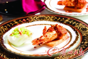 材料:竹節(jié)蝦2只、面包2小片、起骨雞中翅2只、青紅椒粒少量、香炸生粉1茶匙、鹽少許、胡椒、味精少許、香脆椒適量、孜然粉少許。
