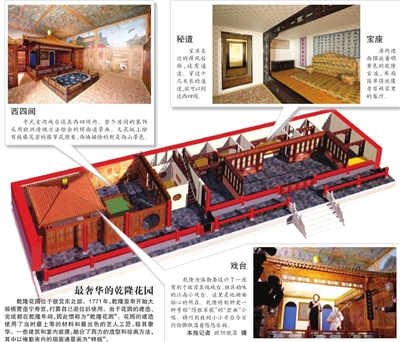 位于故宮乾隆花園內(nèi)的倦勤齋,是乾隆為自己1795年退位后使用而預(yù)建的。乾隆生前曾下諭旨,將紫禁城寧壽宮一帶保留為太上皇宮殿。自從末代皇帝溥儀1924年遷出故宮以后,乾隆花園一直封閉,從未開放過。