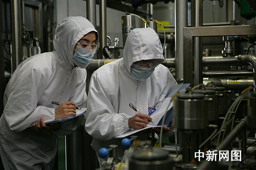 就近期而言,雅士利的工作重心是不斷提高質(zhì)量檢測的水平和力度。首先,原料奶進(jìn)廠必須經(jīng)過四道檢查——奶農(nóng)、奶販兩個(gè)環(huán)節(jié),由當(dāng)?shù)卣畽z查;進(jìn)廠前,接受第三次檢查,主要檢測其蛋白質(zhì)、脂肪、干物質(zhì)含量和三聚氰胺、酸度、雜質(zhì)等,如沒問題則輸送到原奶倉,經(jīng)凈乳、殺菌后再輸送到巴氏奶倉;噴粉前,第四次檢測,再次檢測蛋白質(zhì)、脂肪、干物質(zhì)含量和三聚氰胺,確保檢測合格后再添加配料、濃縮、噴粉。也就是說,在生產(chǎn)源頭就須過“四道關(guān)”。