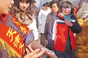 天津義工服務(wù)隊(duì)是民間自發(fā)組織,有3000多名隊(duì)員,主要是來自本市各高校的大學(xué)生。據(jù)隊(duì)長李永介紹,他們之所以舉辦“拒絕職業(yè)乞討者”的街頭模擬與識(shí)破的活動(dòng),源于去年的一場真實(shí)遭遇。