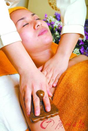 現(xiàn)在,美容院還推出巧克力熱石按摩,其巧克力石實際是罕見稀有的帶有巧克力香味的金香玉天然玉石。配合高等級的身體能量按摩油,將兩者的作用巧妙地合二為一,能迅速滋潤干裂的肌膚,滲透至肌膚內(nèi)層,清除毛囊內(nèi)每天積聚的污垢,同時排導出全身酸毒。