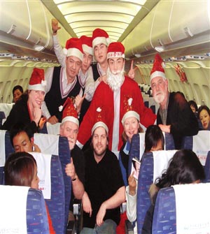 今天就是西方的“平安夜”了,昨天上午,在成都飛往上海的3U8961航班上,全體機(jī)組成員戴上了圣誕帽,和旅客們一起猜謎,進(jìn)行有獎(jiǎng)問答(右圖)。機(jī)上7名來自美國(guó)的旅客還和乘務(wù)員們一起唱起了圣誕歌,乘客們提前感受了一把圣誕平安夜的熱鬧。