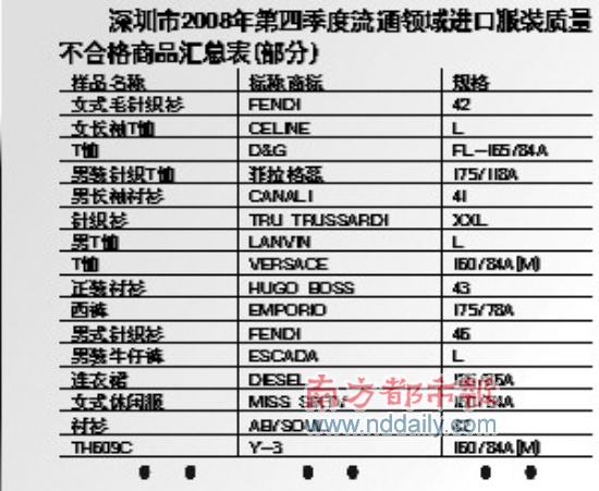 寶姿、芬迪(FENDI)、阿瑪尼(EMPORIOARMANI)等國(guó)際頂級(jí)品牌出“問(wèn)題”了。深圳市工商局近日發(fā)布了深圳市第三、四季度流通領(lǐng)域服裝、進(jìn)口服裝質(zhì)量監(jiān)測(cè)情況。結(jié)果顯示,被抽查的101批次國(guó)產(chǎn)服裝中有34批次不合格,被抽查的30批次進(jìn)口服裝中則有18批次不合格,合格率僅為40%.