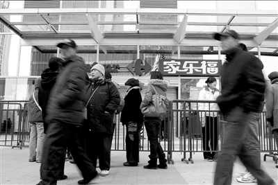 昨天,市民趕到家樂福時(shí)吃了閉門羹。王苡萱攝