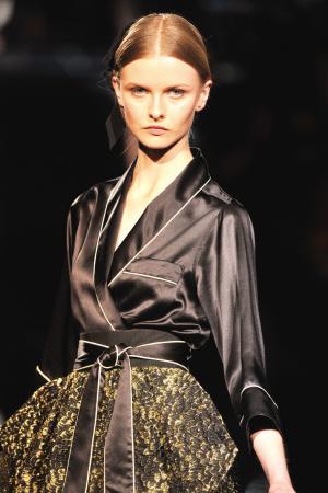 華美之風(fēng)這種潮流創(chuàng)造出一種優(yōu)雅的漫不經(jīng)心,衣服體現(xiàn)了流動(dòng)性和柔軟性,懸垂感和燃燒的橘色營(yíng)造出一種新的性感。 (宋笑梅)