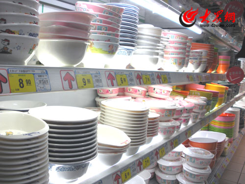 近日有報(bào)道稱,國內(nèi)部分企業(yè)使用不合格原料生產(chǎn)仿瓷餐具,給消費(fèi)者帶來潛在的健康危害。今天,本網(wǎng)記者對濟(jì)南的幾家超市進(jìn)行暗訪,發(fā)現(xiàn)仿瓷餐具仍在市場上進(jìn)行銷售。