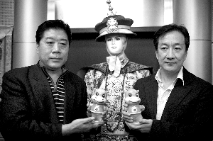 兩位草根皇帝李少華(左)和張濤(右)在展示地壇廟會(huì)的吉祥物。昨日,地壇廟會(huì)組委會(huì)宣布,老北京叫賣將首次進(jìn)駐地壇春節(jié)廟會(huì),并將為游客首次上演老北京叫賣情景劇。而地壇海選的新“皇帝”將于大年初一、初五扮演皇帝祭地。今年,地壇廟會(huì)在對(duì)小吃攤位進(jìn)行拍賣的同時(shí),還拿出五個(gè)位置絕佳的“黃金攤位”,請(qǐng)來(lái)了正宗“中華老字號(hào)”小吃的代表:東來(lái)順飯莊、白魁老號(hào)、護(hù)國(guó)寺小吃店、餛飩侯和茶湯李。(浦峰 李立強(qiáng) 攝影報(bào)道)