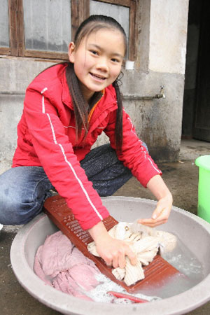 “這點(diǎn)困難算不了什么,美好的明天在向我招手!”近日,當(dāng)記者在長沙縣安沙鎮(zhèn)龍華新村見到“感動長沙十佳少年”葉果時(shí),她正冒著寒冬的細(xì)雨,蹲在田邊為父親洗衣服。一雙小手已經(jīng)被凍得紅腫,她卻對記者報(bào)以燦爛的微笑。