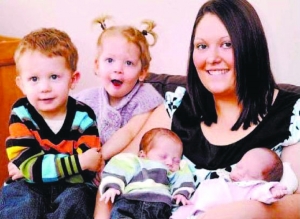 英國(guó)樸次茅斯市22歲母親卡莉·奧布賴恩和28歲男友約翰·格朗特在一起生活時(shí),為了避孕她幾乎每天都堅(jiān)持服用避孕藥。可令卡莉做夢(mèng)也沒想到的是,避孕藥非但對(duì)她毫無效果,并且她還在兩年時(shí)間中接連生下了兩組可愛的雙胞胎!