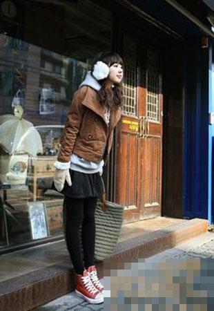 棕色、黑色作為秋冬的主打顏色,要找到適合的搭配方法實(shí)在是太容易不過(guò)了。偏愛(ài)棕色的皮夾克,因?yàn)樗鼜?fù)古又保暖,下身的短裙和中邦帆布鞋形成了學(xué)院風(fēng)格,但又帶點(diǎn)性感,大膽積極的天蝎座女生不妨試一試!