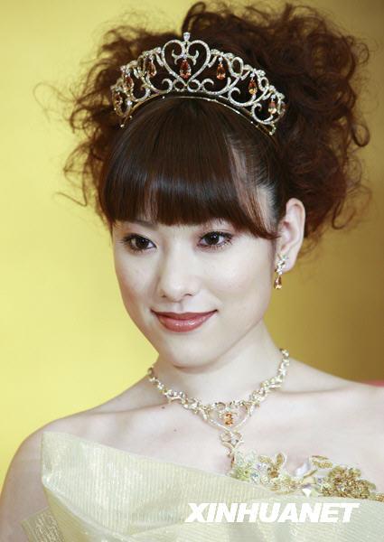 2月4日,模特在日本東京展示著名婚紗設(shè)計師桂由美設(shè)計、一家銀座老字號珠寶店制作的心形婚紗首飾。這套首飾由王冠、項鏈和耳環(huán)組成,使用18K黃金和大量鉆石等名貴寶石制作,售價約7千萬日元。新華社記者 任正來 攝