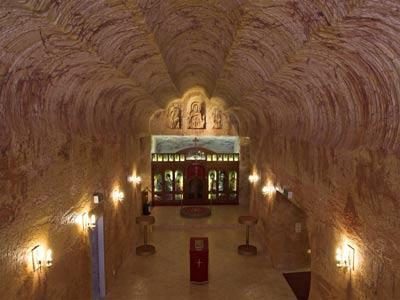 先從世界各地飛到澳大利亞悉尼,然后轉(zhuǎn)機(jī)到南部教會(huì)城市阿德萊德(Adelaide),在這里住宿一夜,補(bǔ)足精神后,第二天上午乘坐惟一一家經(jīng)營(yíng)庫(kù)波佩迪航線(xiàn)的Kendell Holidays航空公司的小飛機(jī),在只有8個(gè)座位的單引擎飛機(jī)上度過(guò)難挨的3個(gè)小時(shí)——沒(méi)有空姐伺候,也沒(méi)有咖啡和紅酒,舷窗下面是一望無(wú)際的紅土沙漠,就在女孩子們即將花容失色的當(dāng)口兒,庫(kù)波佩迪到了。在高達(dá)40攝氏度的熱浪中坐上四驅(qū)車(chē),沿途清一色的坑洞和起伏的的紅色沙丘,仿佛登上了土星,在這里首先要學(xué)會(huì)“黑白顛倒”,把白天當(dāng)夜晚,把夜晚當(dāng)白天。先從晚上開(kāi)始吧,因?yàn)橥砩蠝囟炔拍芙迪聛?lái),先去商店給情人挑選蛋白石,然后——庫(kù)波佩迪郊外有一個(gè)稱(chēng)作“月球世界”(Moon Plain)的沙丘,是觀看南半球流星雨的最佳地點(diǎn),與情人摸黑來(lái)到這里,坐在柔軟的沙子上,老板會(huì)送上兩杯冰涼的澳洲利亞橙,然后透過(guò)高倍天文鏡了望星河閃爍的太空,在流星即將滑落的瞬間,擁緊你的情人許下星語(yǔ)心愿.....沙漠里的白天酷熱難當(dāng),最好呆在旅館里,而洞穴旅館恰恰是庫(kù)波佩迪的特色,情人們稱(chēng)其為“洞房”——地地道道的“洞”!事實(shí)上,鎮(zhèn)上除了教堂和醫(yī)院,基本都是洞穴居所,這些大小不等的洞穴全部是開(kāi)采蛋白石廢棄的礦坑。庫(kù)波佩迪最大的旅館“沙漠洞穴旅館”(Desert Cave Hotel)有20間“洞房”,別看在地下,卻相當(dāng)豪華,除了地下恒溫23攝氏度外,餐廳、酒吧、K房、珠寶店一應(yīng)俱全,曾經(jīng)入選過(guò)《世界頂級(jí)豪華小旅館》(Small Luxury Hotels of the World)。