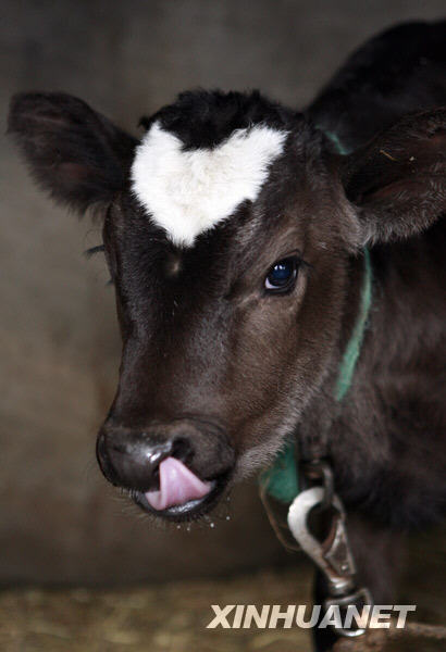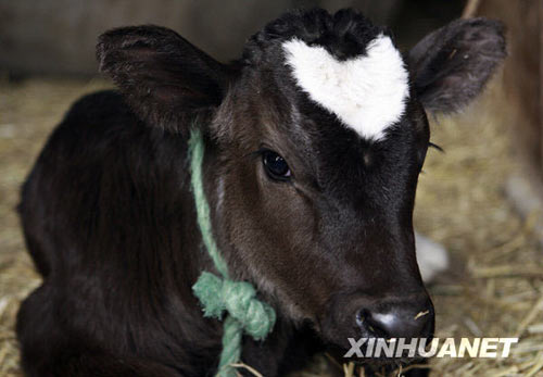 日本神奈川縣藤澤市一頭出生不久的小牛犢因額頭正中有一個(gè)規(guī)則的心形圖案而在牛年情人節(jié)到來(lái)前成為媒體競(jìng)相追逐的對(duì)象。