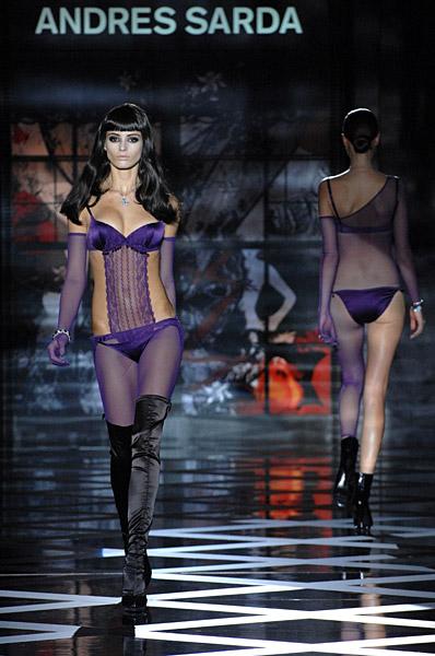 2月23日,在西班牙首都馬德里舉行的時(shí)裝周上,模特展示西班牙設(shè)計(jì)師安德烈斯·薩爾達(dá)的時(shí)裝作品。當(dāng)日,在2009/2010秋冬時(shí)裝流行趨勢展上,安德烈斯·薩爾達(dá)的新款內(nèi)衣作品展現(xiàn)了女性的感性與誘惑,打造出被神秘光環(huán)包圍中驚艷、性感而狂野的女性形象。 新華社記者陳海通攝