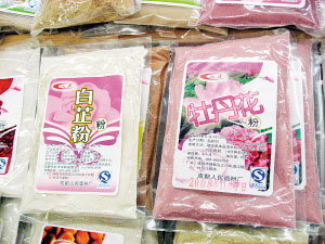 些敷臉的粉末不在護(hù)膚品分類中出現(xiàn),而是在超市的面粉區(qū)域銷售,也有近百種之多,將水果、蔬菜以及堅果的提取物同面粉結(jié)合,這樣的粉可以用溫水調(diào)和,用小火或微波爐煮制食用,也可以加蛋清或蜂蜜敷臉,其實(shí)喜歡DIY面膜的女士們一定知道,用蛋黃混合面粉而成的面膜薄薄地涂在臉上,可滋潤皮膚。只不過現(xiàn)在我們食用的面粉可以用這些特殊的面粉代替了,會有更多的功效在里面,比如美白、抗敏、排毒等功效。可選擇的有杏仁粉、枸杞粉、玫瑰花粉、苦瓜粉、淮山粉、薏仁粉、檸檬粉、蘆薈粉、白芷粉、紅豆粉、綠豆粉、杜鵑花粉、黑木耳粉、荷葉粉等等。70克一小袋兒要花費(fèi)近17元,顯然敷臉比食用更劃算些。(文/攝 孫小雅)