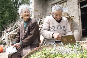 “瞎說(shuō)!”老頭立即吹胡子瞪眼,“別個(gè)都說(shuō)我才六七十歲”。話音未落,他就匆匆進(jìn)屋拿出一個(gè)大瓷碗,反復(fù)聲明自己每餐要吃?xún)纱笸腼垺?“秀”完飯量還不算,老頭又拎出兩個(gè)大水桶要去挑水。