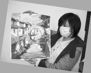 記者看到了趙蕾多幅作品,有人物素描,也有山水畫(huà)和油畫(huà)。趙蕾的家人介紹,趙蕾是個(gè)細(xì)心的孩子,每幅作品都保存了下來(lái)。其中,一幅小橋流水的水彩畫(huà)是趙蕾的得意之作,看到該畫(huà)時(shí),趙蕾弱聲說(shuō):“我好想再畫(huà)畫(huà),如果我的病能好了,一定要到北京、云南、海南島等美麗的地方看一看,把美景都畫(huà)下來(lái)!敝两,即將20周歲的趙蕾還沒(méi)有離開(kāi)過(guò)蘇州。