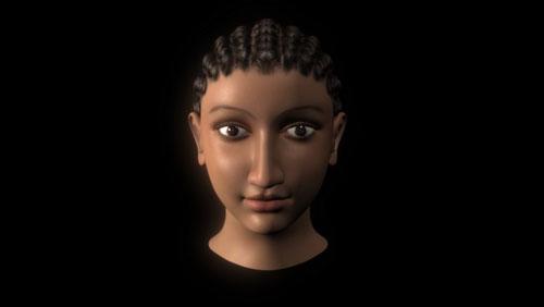 法醫(yī)人類學(xué)家卡羅琳·威爾金森借助電腦技術(shù)復(fù)原出阿爾西諾頭像!八邦~較長,這一特征在古埃及人和非洲黑人中較為常見。這顯示出她的混合血統(tǒng)!