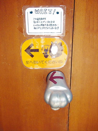 在店員的帶領(lǐng)下,我們脫掉鞋、把手洗干凈,然后才能坐下。這時(shí)卻很失望地被告知,不可以直接將喜歡的貓咪帶到自己的桌前。原來,在貓咪咖啡館,規(guī)矩特別多。不能大聲喧嘩,不可以任意撫摸并抱起貓咪。在貓咪咖啡館里,客人只能尊重貓咪的喜好吸引它們湊到自己身邊,而不能硬性讓貓咪靠近。店員會(huì)給客人提供貓咪喜愛的玩具,吸引它們過來玩耍。而且,去咖啡館之前,還需遵循“貓咪時(shí)間”,因?yàn)樨堖浯蠖鄷兎钩觯滋煦紤,傍晚精神,所以咖啡館越到晚上客人越多,如果愛看懶洋洋的貓咪則午后來為宜。店內(nèi)桌上散布著貓糧,若想親自喂貓咪,須先和店員確認(rèn)。