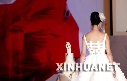 當(dāng)日,一場“中國風(fēng) 婚禮秀”在上海希爾頓酒店舉行。模特們展示以紅、白、綠、黃為色調(diào)的婚紗,給在場的準(zhǔn)新人和來賓們帶來美的享受。
