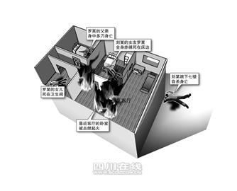 跳樓時,劉某身上穿了一件棉毛衫和一條春秋褲,明顯是經(jīng)過了一夜的思考才做的決定!八丶业臅r候還吃了燒烤的?蛷d左邊的那間臥室還被火燒了,孩子死在衛(wèi)生間里面,穿的粉紅皮鞋,身體在便池里面。”據(jù)這位知情人士透露,現(xiàn)場還有兩間臥室沒有被火燒,分別放著羅某和其父親的尸首。羅某全身赤裸,趴在床頭邊,紅色內(nèi)褲被脫至大腿兩側(cè),而羅某的父親在另外一間臥室平躺,頭朝門外,身上多處刀傷,滿地鮮血……至于劉某自殺前為何要將另外一間臥室點燃不得而知,遺書中沒有交代。(記者高洋攝影華小峰)