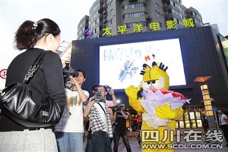 昨晚7點,應(yīng)男友的邀請,鄭小姐來到成都春熙路商圈的青年路太平洋影城準備和男友一起看電影。剛走到影城門口,鄭小姐突然發(fā)現(xiàn):影城門口的大屏幕上,居然正在播放由自己和男友平時照片所組成的短片。沒等鄭小姐回過神來,身穿加菲貓造型服裝的男友周先生已捧著大束玫瑰走上前來,單膝跪地:“嫁給我吧!