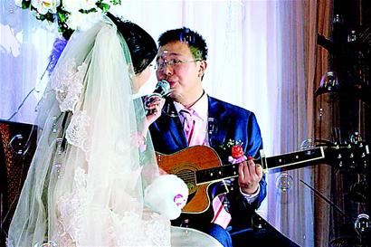 讓曉丹想不到的是,憨厚的李錚不但會(huì)進(jìn)廚房,而且是個(gè)搖滾迷,彈得一手好吉他。曉丹說(shuō),他們的婚禮,所有環(huán)節(jié)都是李錚一個(gè)人策劃的,“對(duì)白、彈吉他、嘉賓祝福、以音樂(lè)劇的形式,全是他想的,他原本還想不要主持人的。”李錚的對(duì)白大部分是自創(chuàng)的,“他從小學(xué)起就不喜歡背書(shū),但沒(méi)想到這么長(zhǎng)的告白,他花了兩個(gè)晚上就背得滾瓜爛熟!保ㄋ谓ㄇ伲