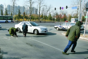 昨早8時(shí),一輛金杯車(chē)從石景山路與上莊東街相交路口欲拐向去八寶山殯儀館西門(mén)時(shí),突然車(chē)上撒下許多硬幣,兩位中年人跑向路口撿錢(qián),車(chē)輛不得不暫停。當(dāng)另一輛車(chē)駛?cè)氚藢毶綒泝x館西門(mén)時(shí),再次撒硬幣,兩位老人迅速跑向車(chē)旁撿。