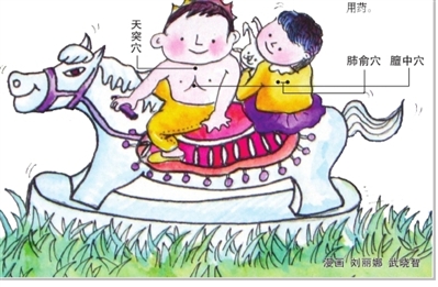 北京軍區(qū)總醫(yī)院藥劑科謝予朋博士介紹說,天突穴在胸骨上窩中央,按摩這個穴位可以緩解咳嗽、氣喘、咽喉腫痛等癥狀;膻中穴在體前正中線,兩乳頭中間,按摩這個穴位可以緩解胸悶、咳喘、吐逆等癥狀;肺俞穴則位于人體的背部,當?shù)谌刈导幌,左右旁開二指寬處,按摩這個部位可以治療呼吸道疾病。