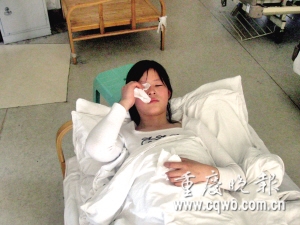 來自西南醫(yī)院 8年沒得到母愛的隆臘梅,此次被查出先天性心臟病,急需手術(shù)。因手術(shù)風險大,臘梅想在手術(shù)前讓媽媽抱抱。昨日,西南醫(yī)院內(nèi)科7樓42床,隆臘梅哭著告訴記者:“哪怕媽媽來看一眼,我也會從容面對手術(shù)。”