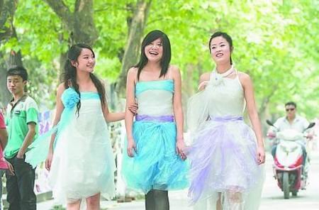 昨日中午,成都理工大學(xué)第四教學(xué)樓旁擺起了展臺(tái),七名身著用藍(lán)、黑、白相間的塑料薄膜做成的“塑料時(shí)裝”的女學(xué)生登場(chǎng),引來(lái)了陣陣掌聲。據(jù)介紹,這些學(xué)生所穿的“塑料時(shí)裝”全部采用日常生活中常見(jiàn)的塑料,通過(guò)他們自己獨(dú)立設(shè)計(jì)成衣服,向現(xiàn)場(chǎng)的觀眾宣傳環(huán)保,號(hào)召師生們盡量采用環(huán)保制品,愛(ài)護(hù)我們共同的家園。(張歐)