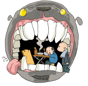 “這家店實(shí)在太黑了。吃飯前不告訴我們價(jià)格,一結(jié)賬,我們才知道被狠宰一刀!比涨埃瑏(lái)自河南省的陳先生撥通本報(bào)新聞熱線。陳先生說(shuō),他到天津出差,準(zhǔn)備清晨從西站乘火車返回。當(dāng)時(shí)他沒(méi)吃早餐,就進(jìn)了西站附近一家沒(méi)字號(hào)的小餐館。站在店門(mén)口的一位老人十分熱情,幫他搬行李,請(qǐng)他進(jìn)屋。他問(wèn)早餐的價(jià)位,老人連說(shuō):“不貴,不貴!笨僧(dāng)吃完早餐結(jié)賬時(shí),換了副面孔的店主說(shuō):“一碗云吞12元,一個(gè)燒餅6塊錢,一碗豆?jié){8塊錢!睋(dān)心糾纏會(huì)耽誤行程,陳先生忍痛“挨了一刀”。