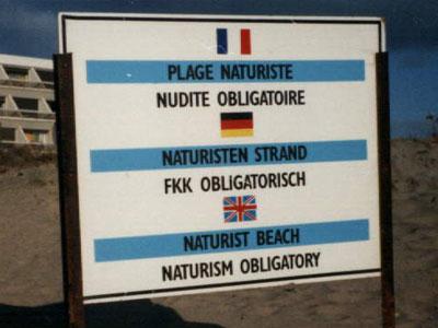 游客開(kāi)車前往阿德格角,老遠(yuǎn)就能望見(jiàn)路旁的指示牌上用法文寫的“裸體”二字。