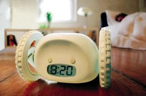 鬧鐘的英文名字“hide and seek”,意思是不抓住它就會無影無蹤了。據(jù)新華社報道,這是美國麻省理工學(xué)院媒體實驗室的科學(xué)家發(fā)明的新型鬧鐘,科學(xué)家給小鐘裝了一套輪子,作為它的“腿腳”。鈴響后,如果貪睡的主人按掉響鈴,小鐘能夠“跑到”桌子或是房間的另一邊,繼續(xù)吹響“起床號”。研究人員表示,當(dāng)鬧鈴再次響起,單是起床找到小鐘本身就足以讓主人清醒,加之鬧鈴一直在響,就是貪睡的人也無法再次入睡了。