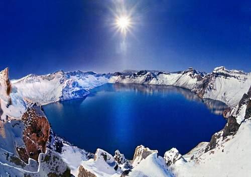 長(zhǎng)白山天池又稱白頭山天池,坐落在吉林省東南部,是中國(guó)和朝鮮的界湖,湖的北部在吉林省境內(nèi)。長(zhǎng)白山系復(fù)合式盾形休眠火山,為中國(guó)東北和歐亞大陸東部最高峰,是松花江、鴨綠江、圖們江之源。史料記載天池水“冬無冰,夏無萍”,夏無萍是真,冬無冰卻不盡然,冬季冰層一般厚1.2米,且結(jié)冰期長(zhǎng)達(dá)六、七個(gè)月。不過,天池內(nèi)還有溫泉多處,形成幾條溫泉帶,長(zhǎng)150米,寬30- 40米,水溫常保持在42攝氏度,隆冬時(shí)節(jié)熱氣騰騰,冰消雪融,故有人又將天池叫溫涼泊。