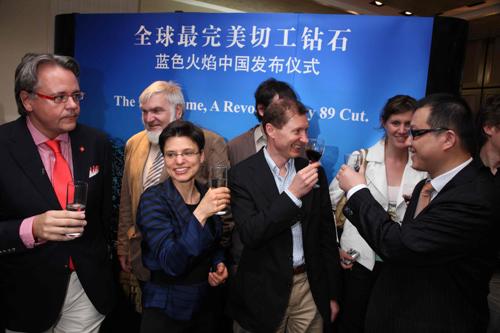 比利時安特衛(wèi)普政府代表團(tuán)在TESIRO通靈上海亞洲旗艦店對藍(lán)色火焰鉆石在中國上市表示慶賀