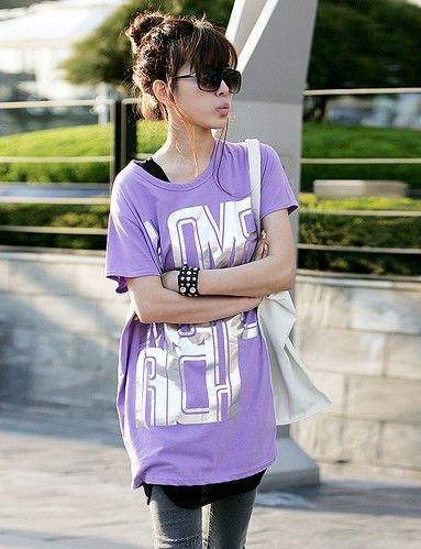 紫色的長衫加上酷酷閃亮的印花,一定是街頭最閃耀的那顆星星!長款的T恤加上最I(lǐng)N的鉛筆褲,這不僅僅可以把腰部讓人煩惱的贅肉給遮掩點,凸顯身材!