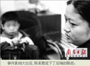 昨日(5月18日),在石龍公安分局探訪室,為爭奪撫養(yǎng)權(quán),精心策劃炮制兒子被拐賣案的陳某霞,流下了后悔的淚水。2006年11月3日晚8時許,陳某霞報案稱,其3歲半的兒子周某龍買東西時失蹤,懷疑被人拐賣。石龍警方迅速成立專案組,開展了長達(dá)2年半的偵查。今年5月16日,石龍分局“打拐”專業(yè)隊連續(xù)奮戰(zhàn)22小時,成功破獲了這起拐騙兒童案,解救兒童1名,抓獲涉案人員2名,宣告了“打拐”專項行動首戰(zhàn)告捷。