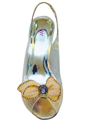 透明金色蝴蝶結(jié)涼鞋(GNC,528元)這雙今年流行的透明復(fù)古涼鞋,總讓人忍不住想起小時候的膠鞋,但這顯然很對獅子女的胃口,就是要把看似廉價的東西穿出時尚感來。